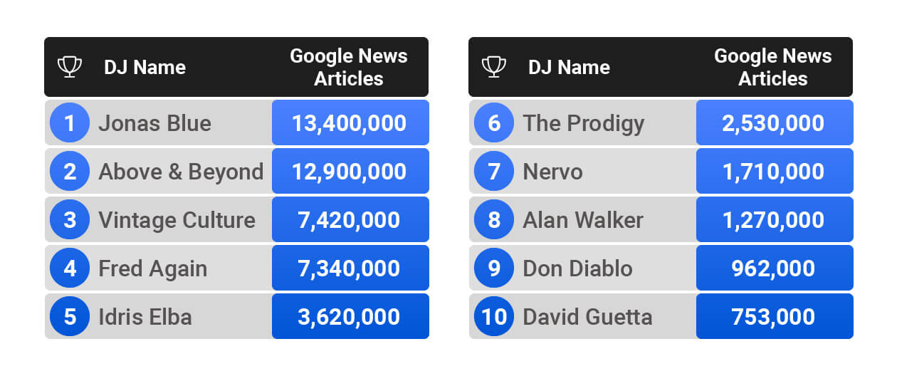 1. Jonas Blue - 13.4m Google News articles